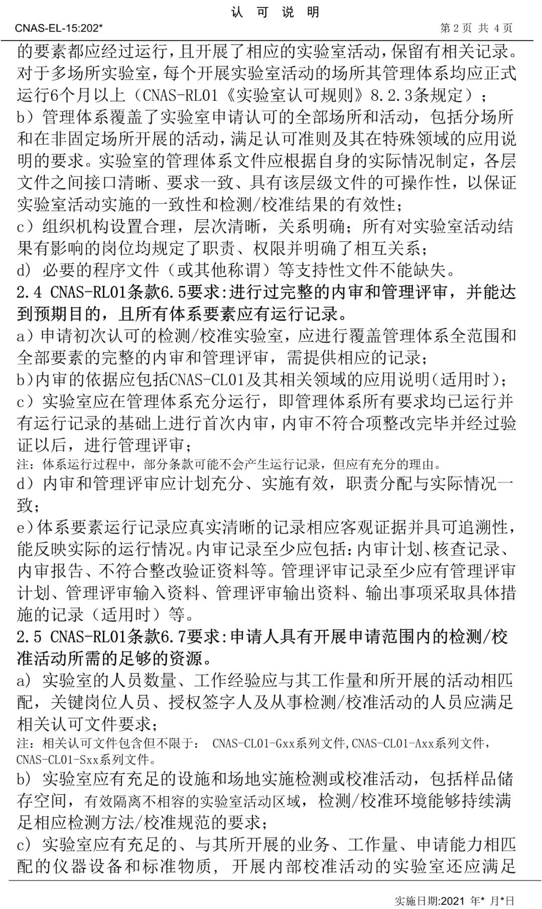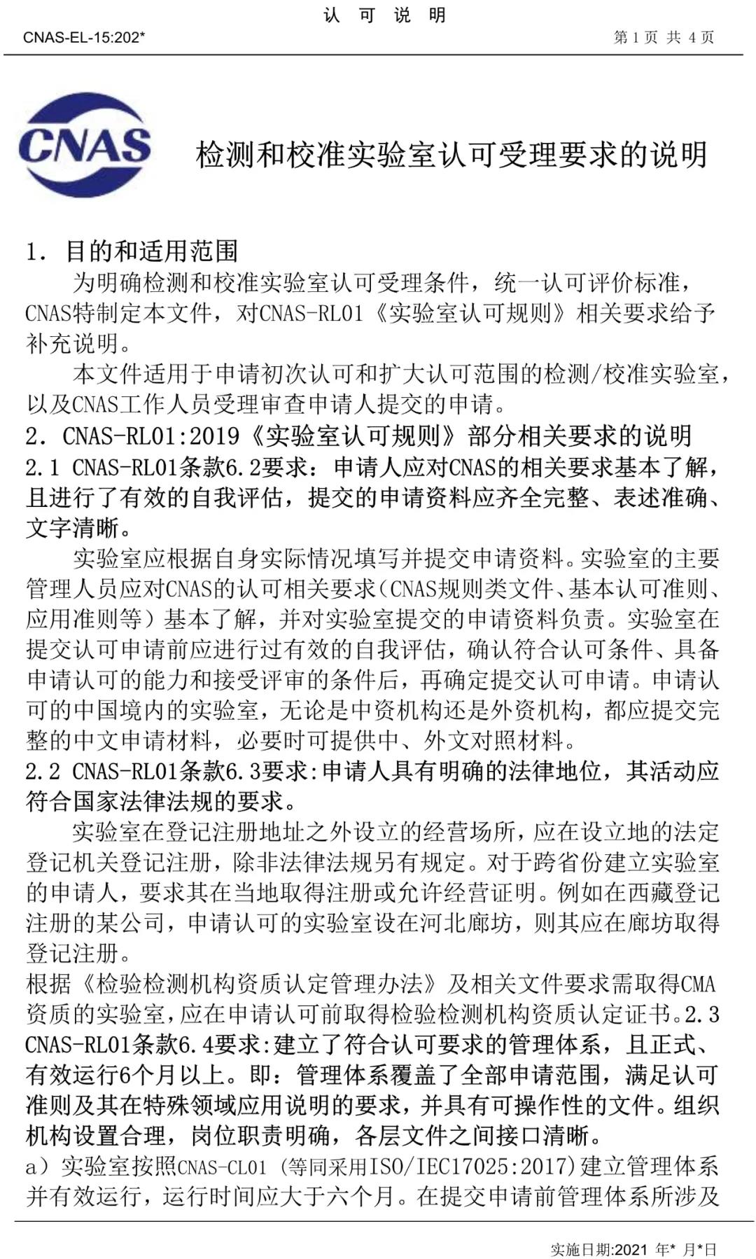 《檢測和(hé)校(xiào)準實驗室認可(kě)受理(lǐ)要求的(de)說明(míng)》(修訂稿)中明(míng)确: