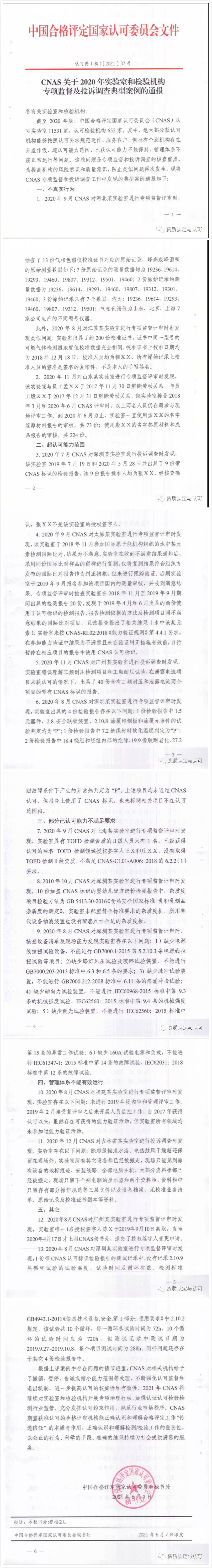 安徽省CNAS咨詢第17講-CNAS官方針對實驗室和(hé)檢查機構專項監督及投訴調查典型案例最新通報