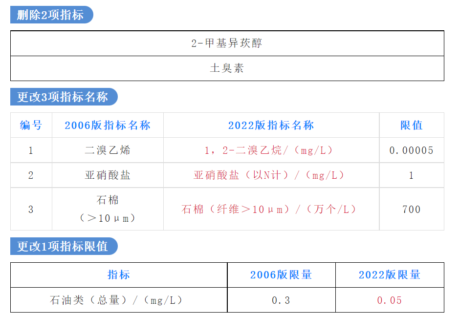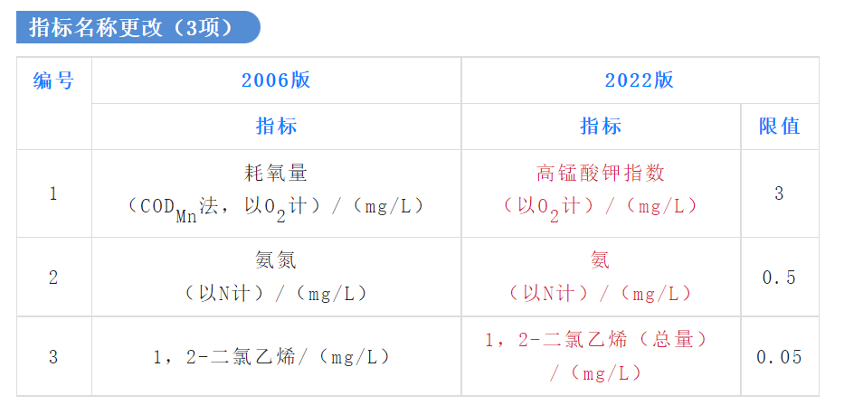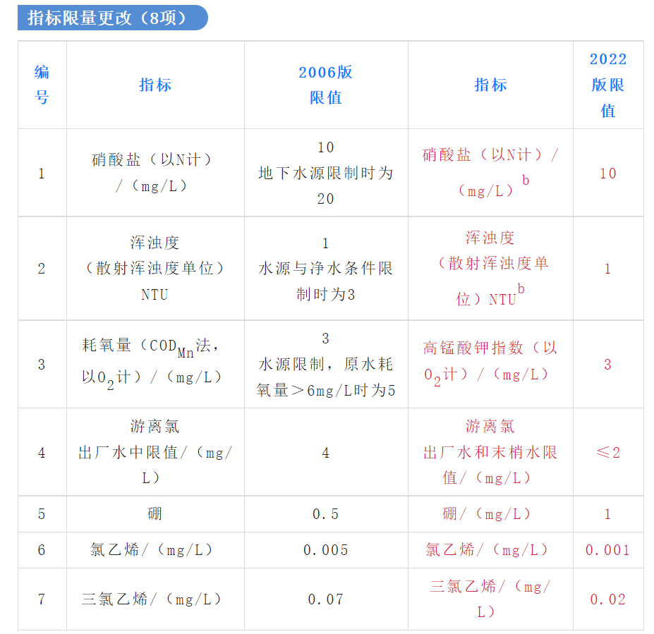 《GB 5749-2022生活飲用(yòng)水(shuǐ)衛生标準》與2006版對比
