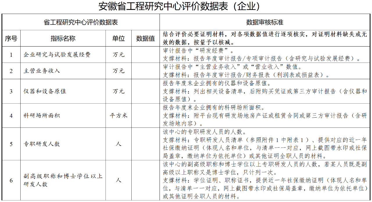 1.安徽省工(gōng)程研究中心評價數據表和(hé)安徽省工(gōng)程研究中心評價總結報告;
