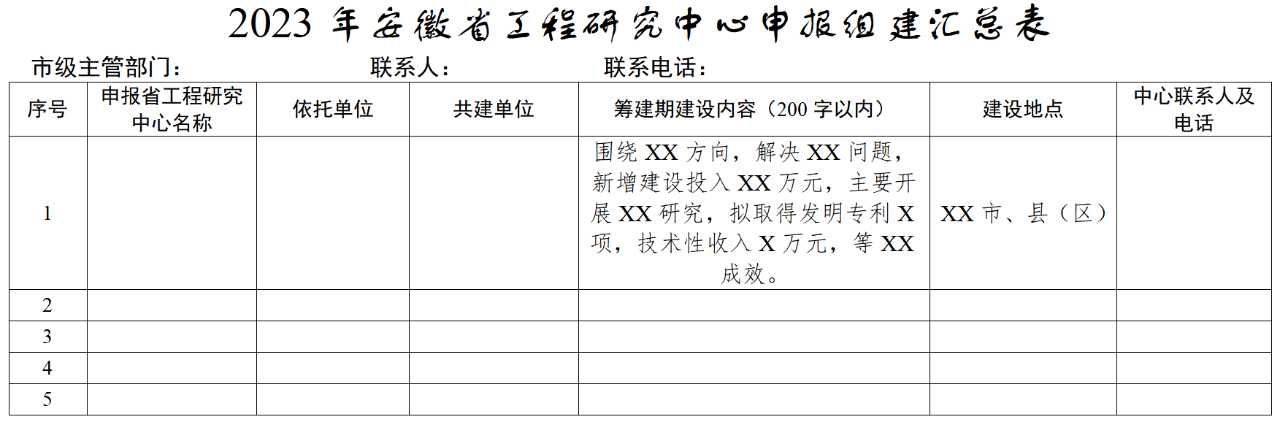 2.2023年安徽省工(gōng)程研究中心申報組建彙總表