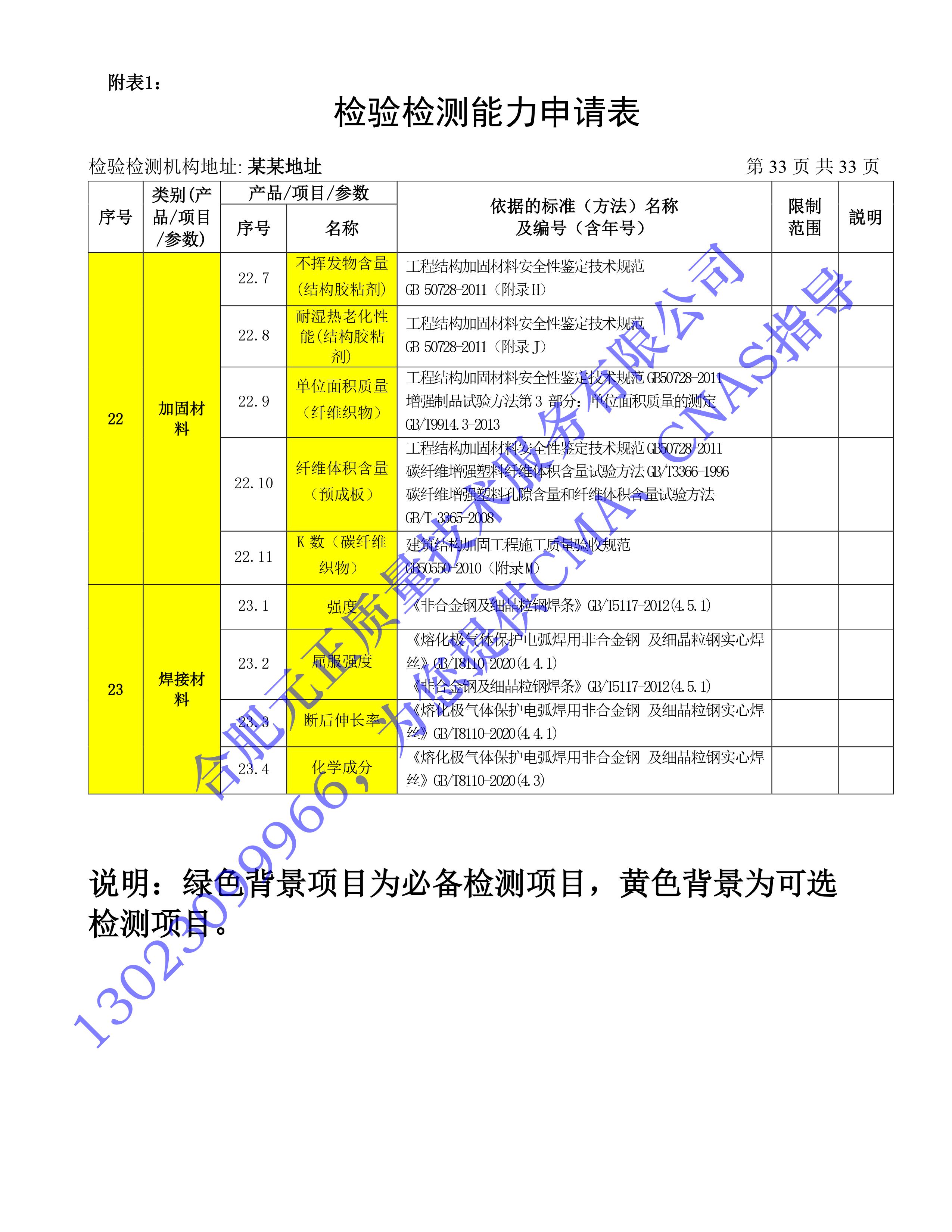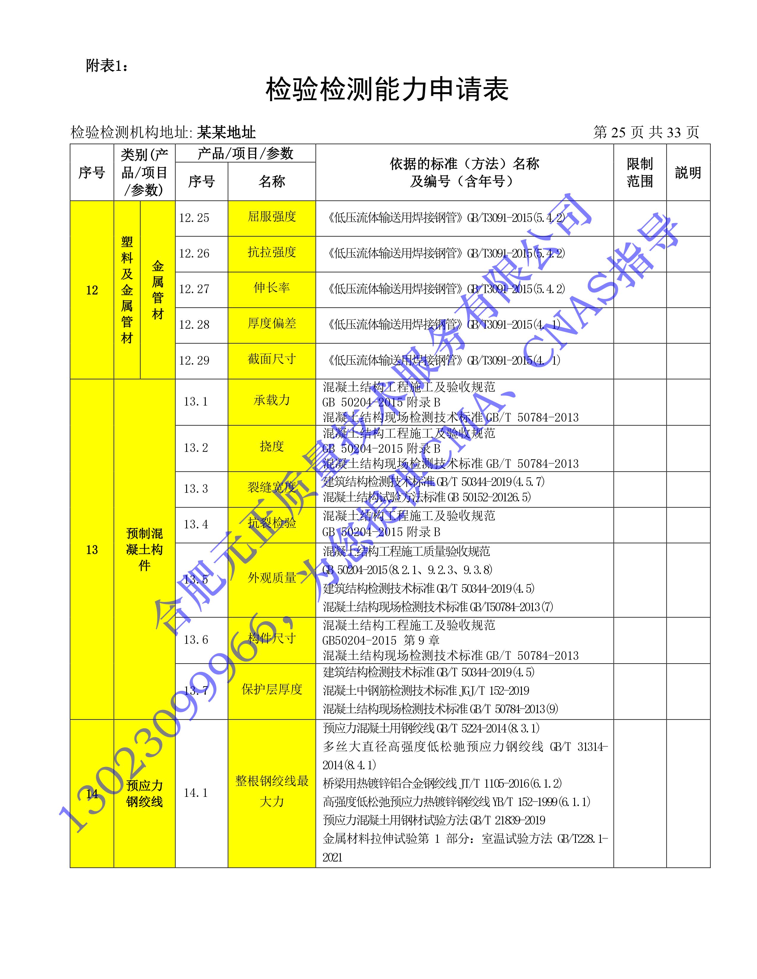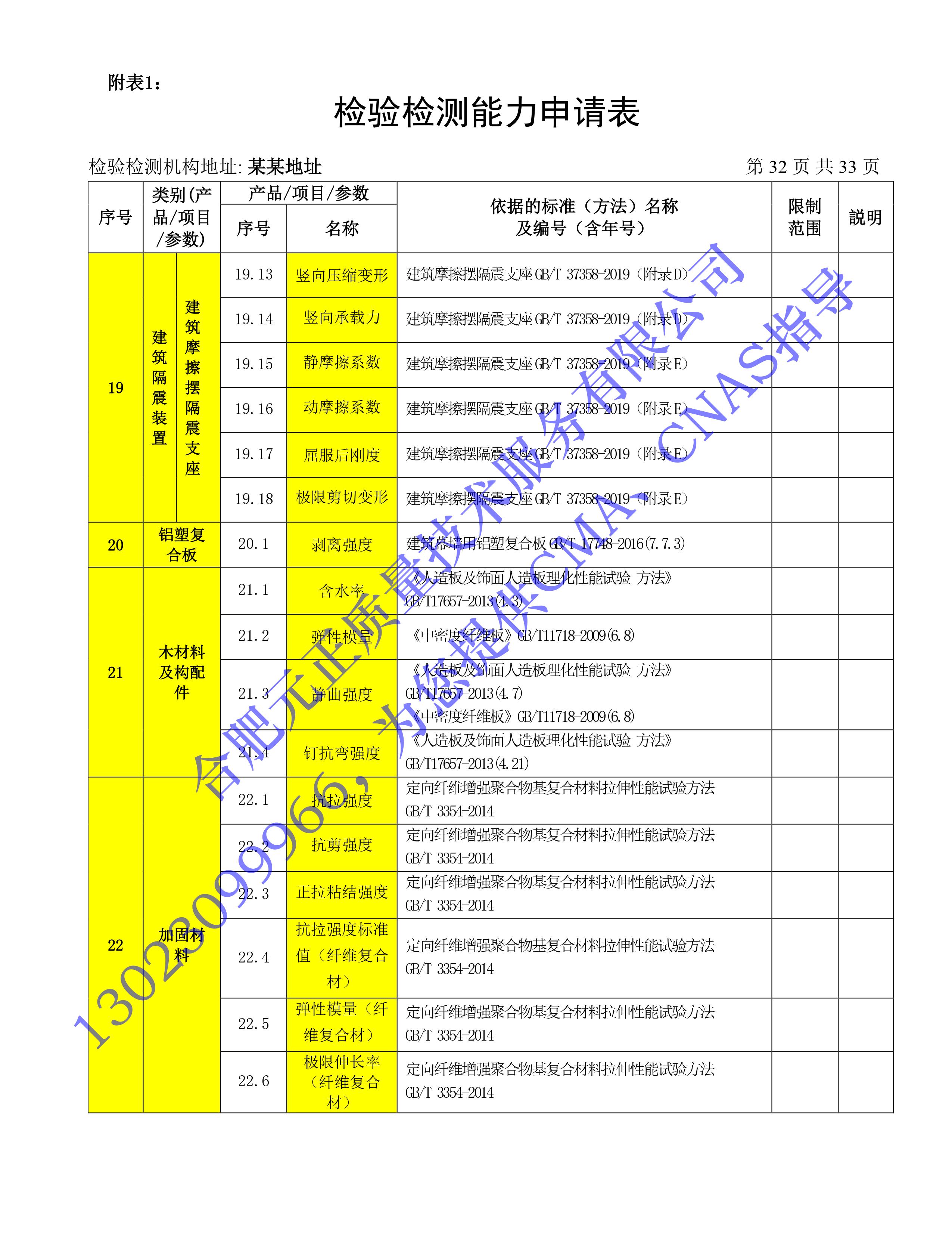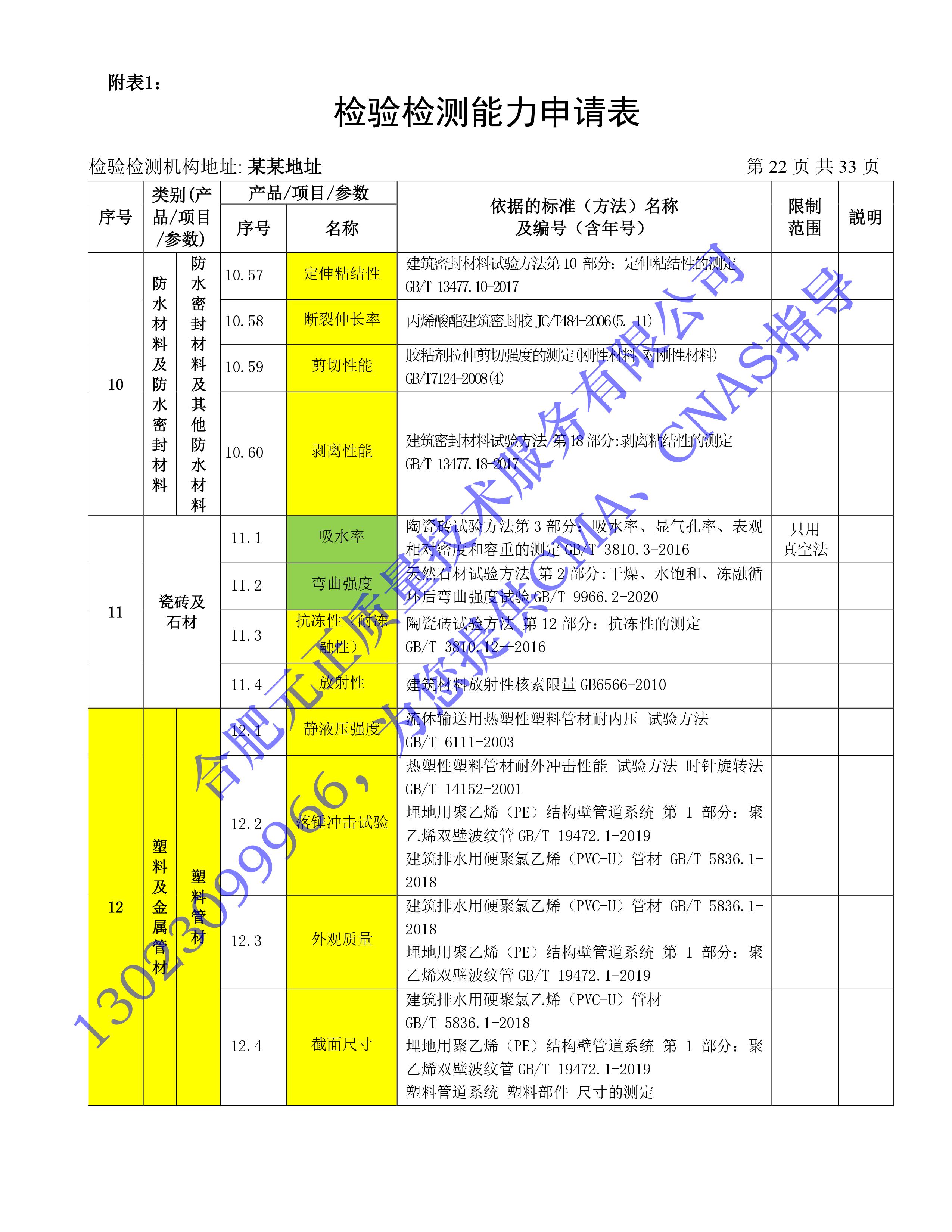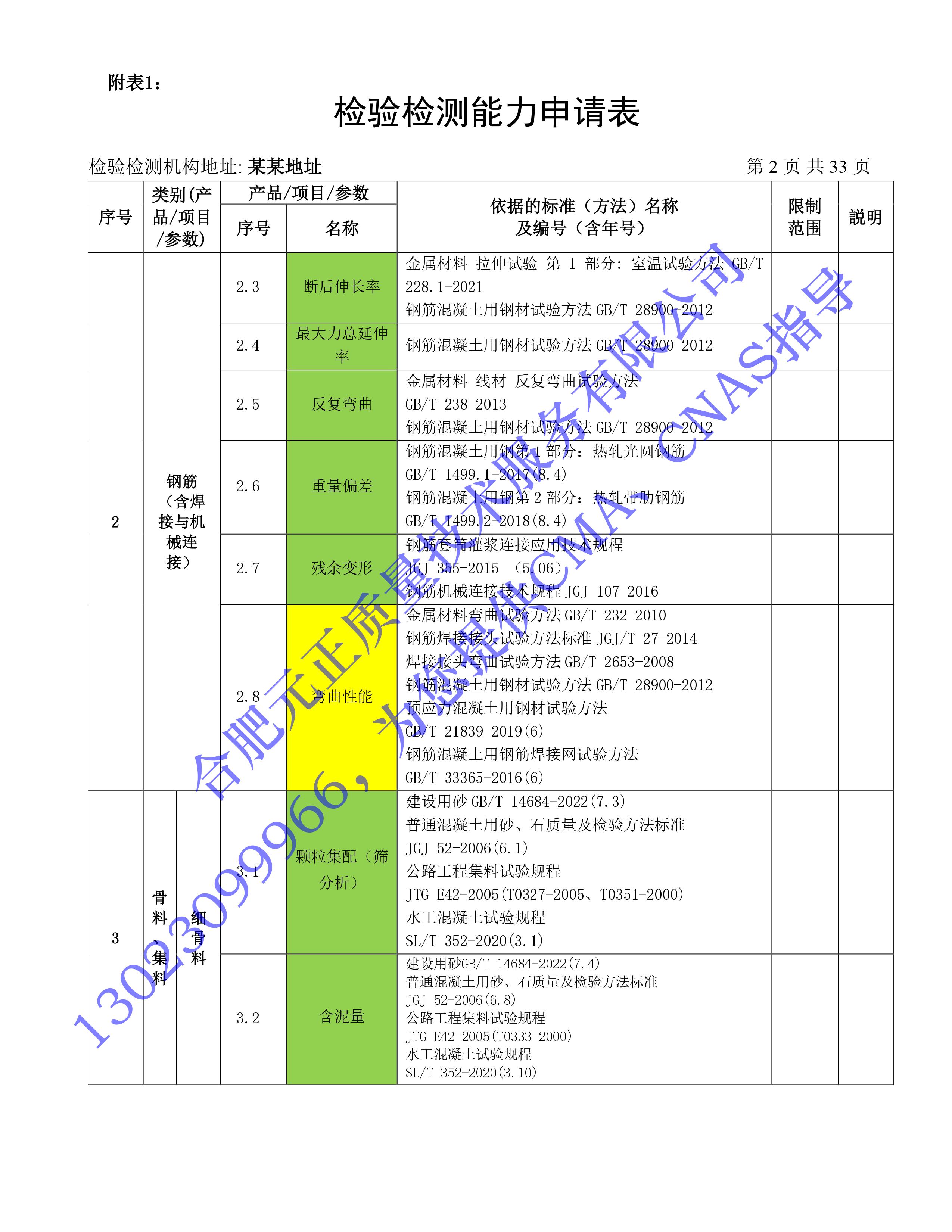 全國首版2023年《建設工(gōng)程質量檢測機構》CMA檢驗檢測能(néng)力申請表(第一部分(fēn):建築材料及構配件(jiàn))