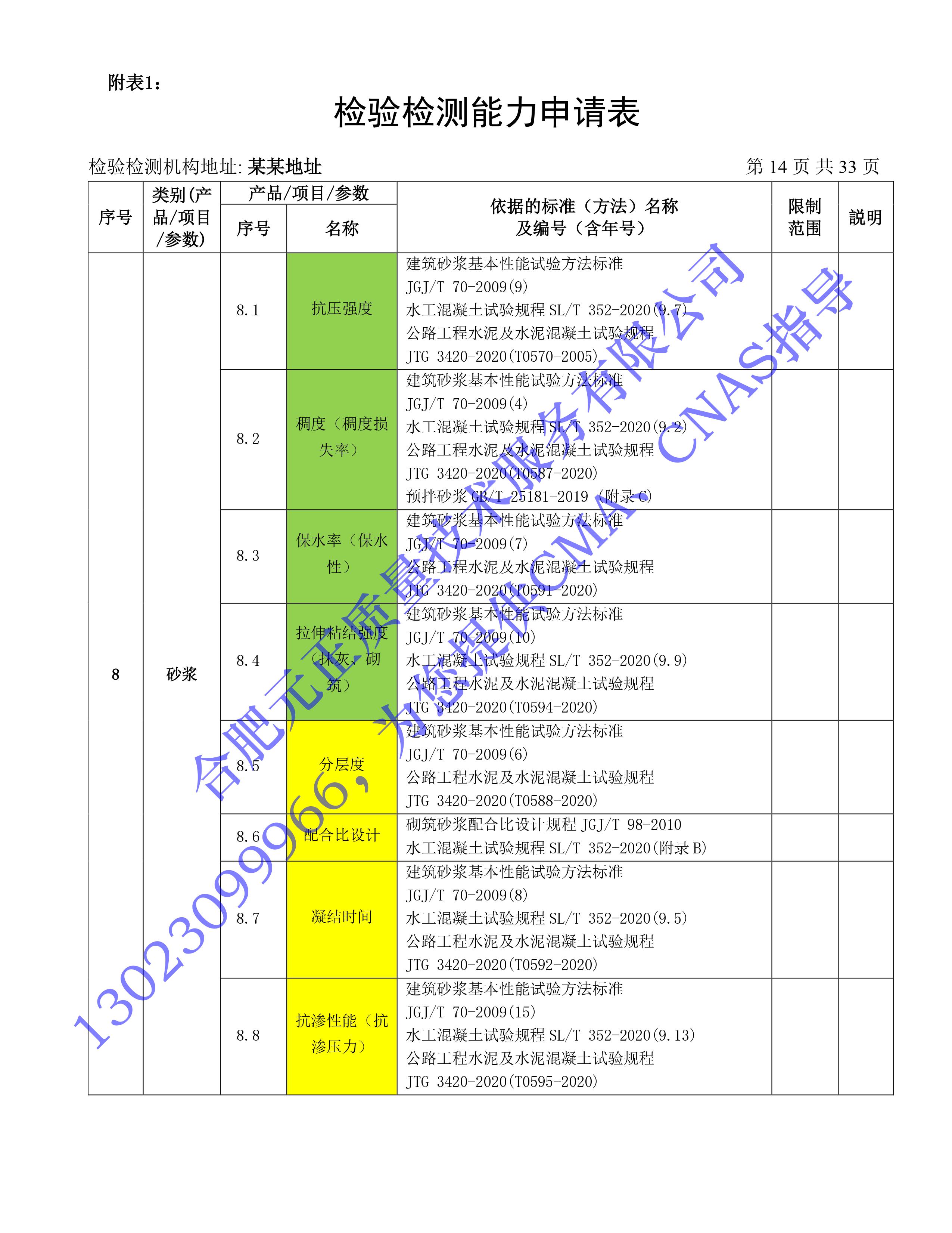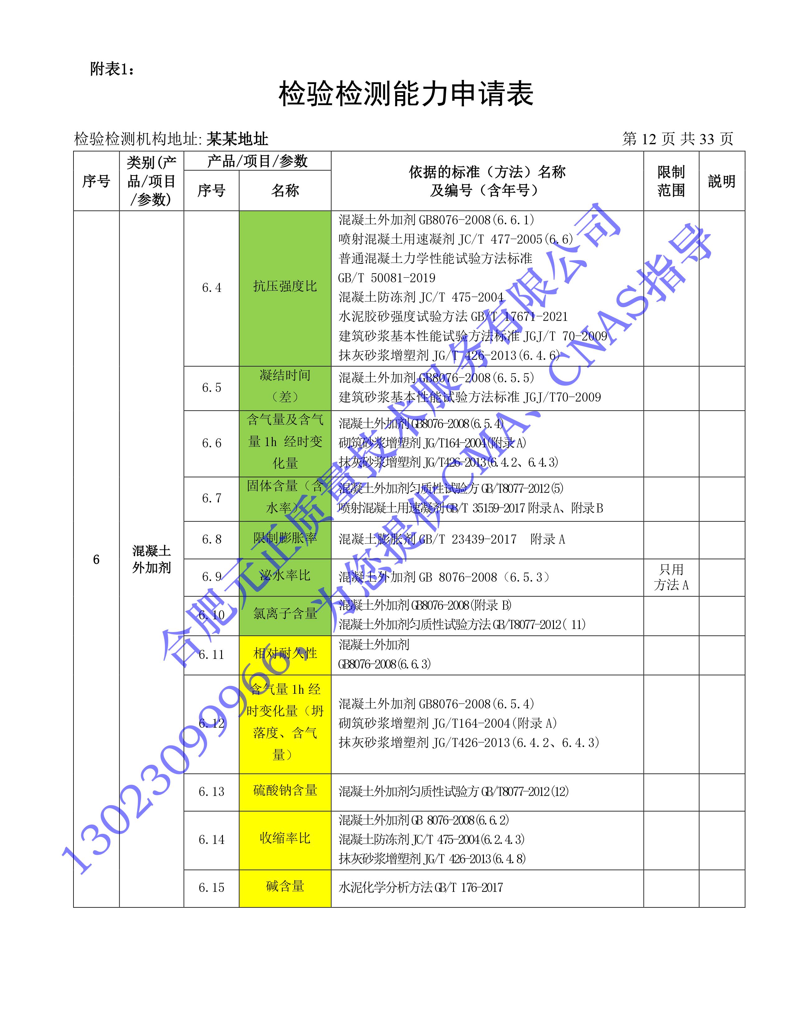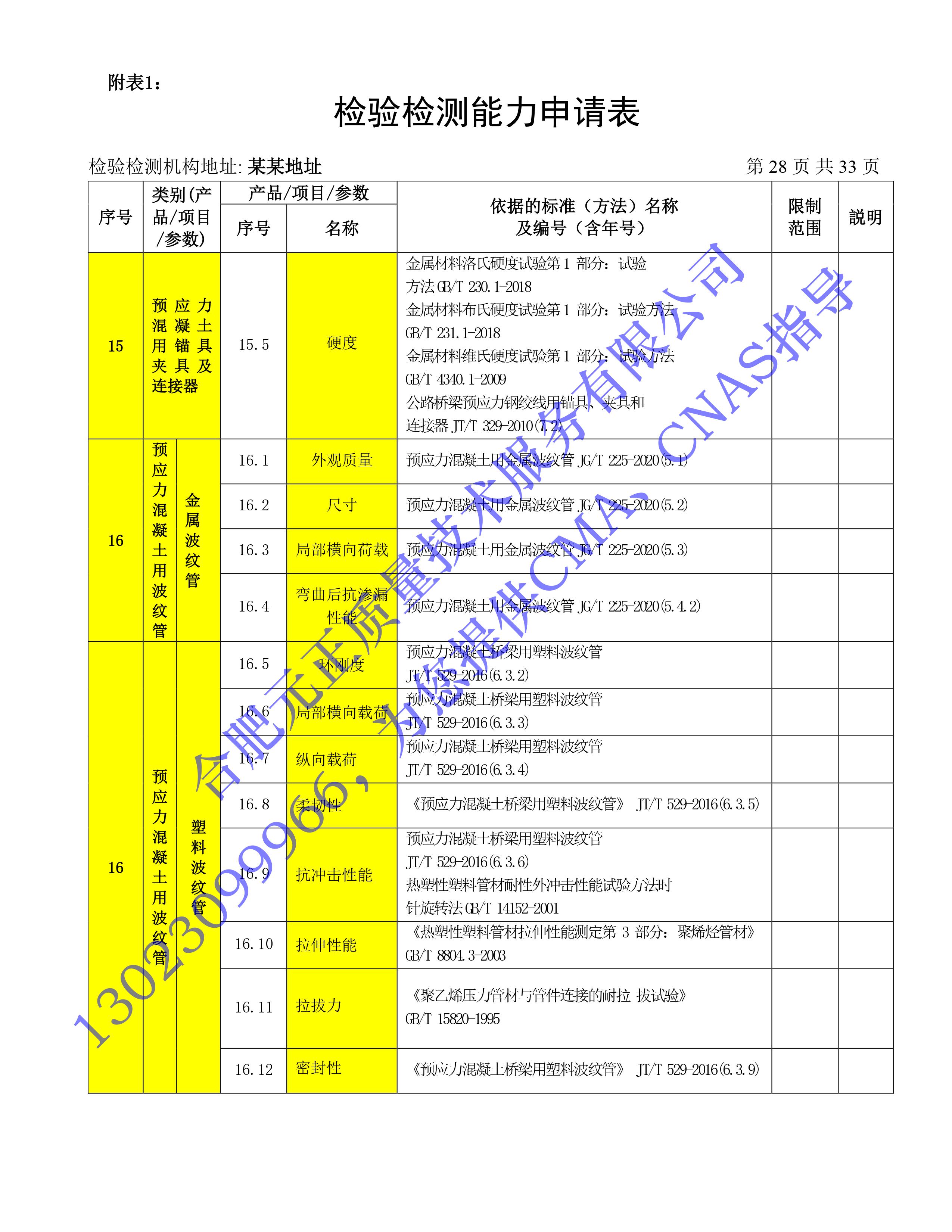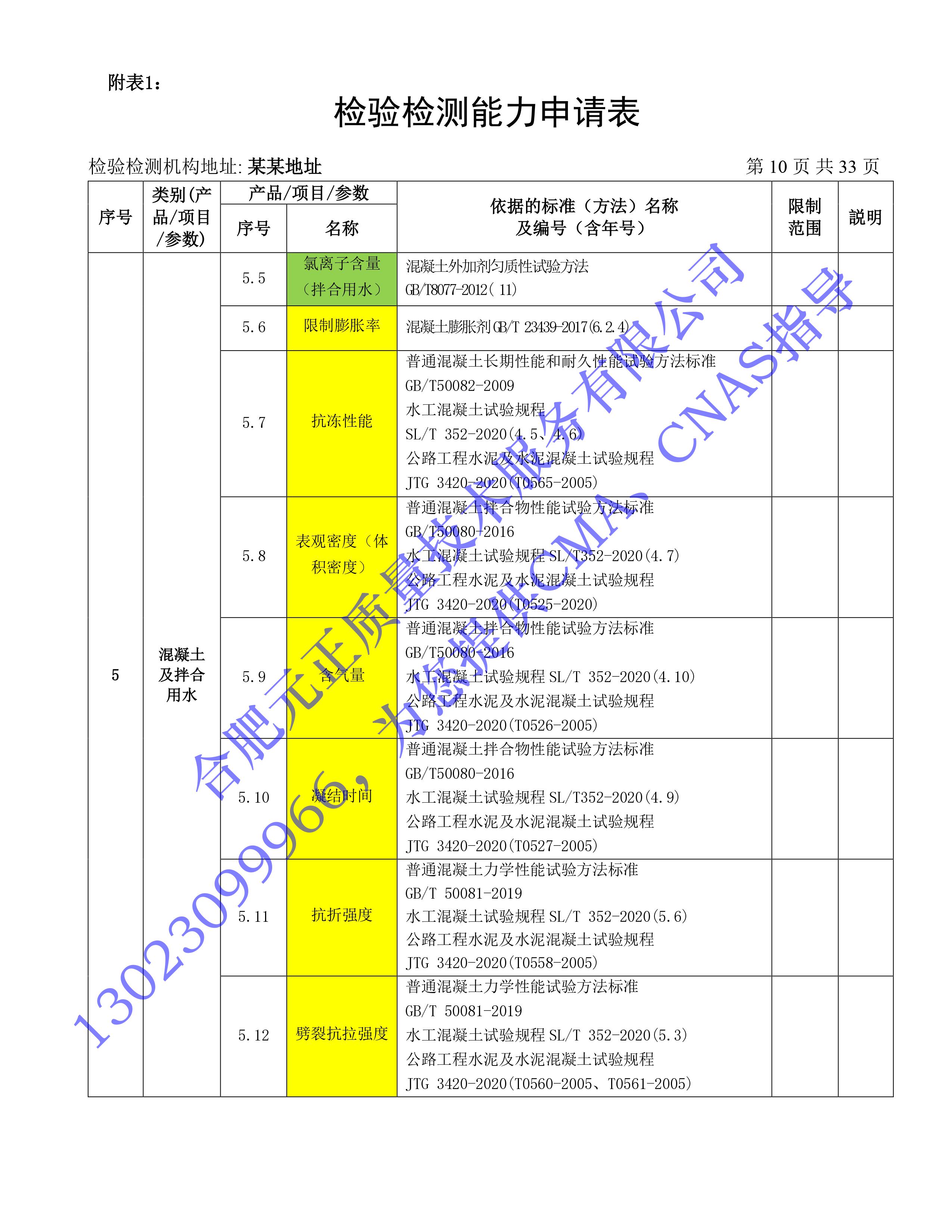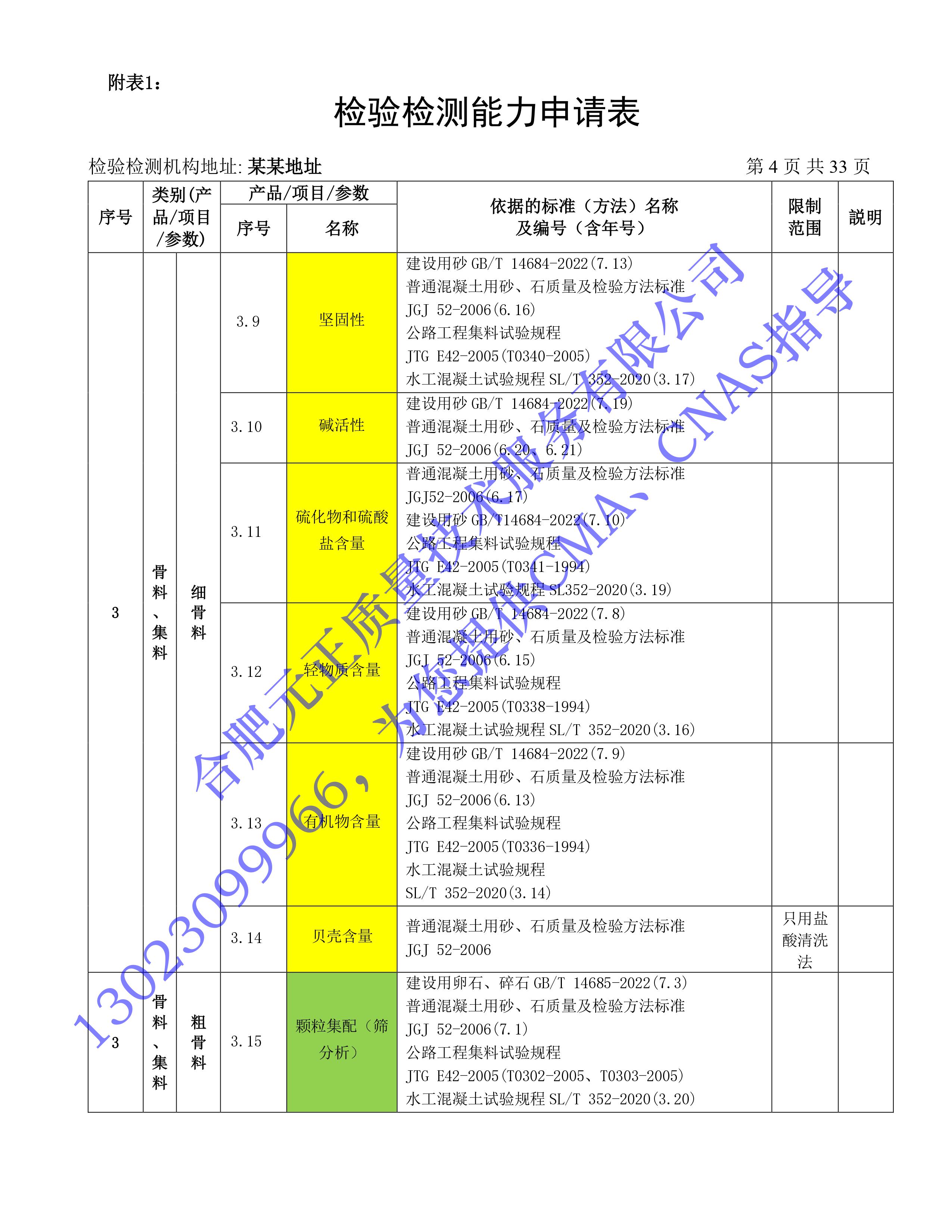 全國首版2023年《建設工(gōng)程質量檢測機構》CMA檢驗檢測能(néng)力申請表(第一部分(fēn):建築材料及構配件(jiàn))