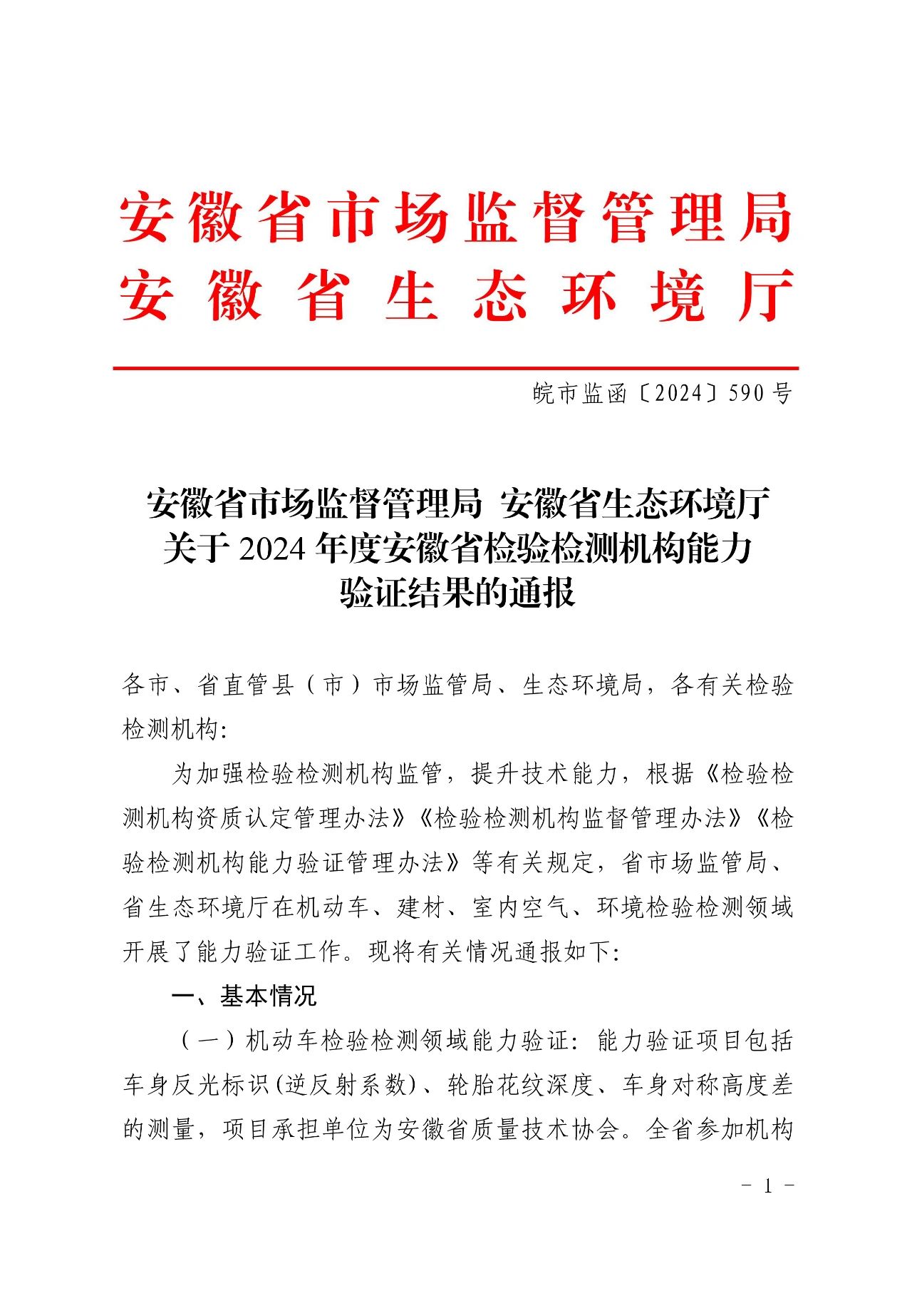 1月(yuè)13日,安徽省市場(chǎng)監督管理(lǐ)局、安徽省生态環境廳聯合通報2024年度安徽省檢驗檢測機構能(néng)力驗證結果,詳情如(rú)下: