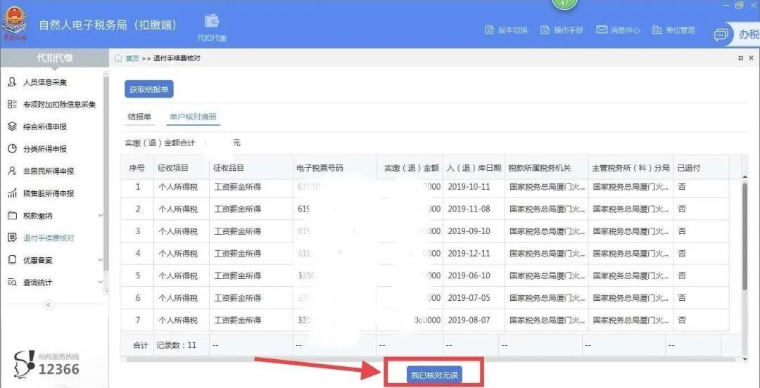 單位上(shàng)年度有(yǒu)代扣代征稅款的(de),今年可(kě)在5月(yuè)30日前完成上(shàng)一年度的(de)結報單确認工(gōng)作。稅務機關将以扣繳義務人(rén)确認的(de)結報單作爲退付手續費的(de)依據,自動啓動退稅流程。